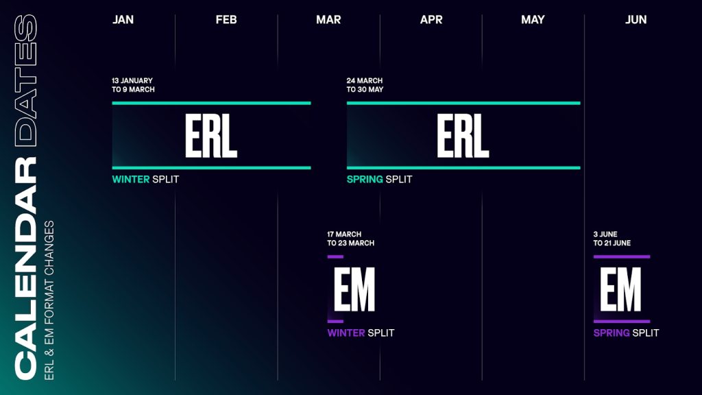 For the first time, ERLs will include a Winter Split, adding a third competitive phase alongside the traditional Spring and Summer Splits. This change mirrors the LEC’s structure introduced in 2023. The Winter Split will lead to a season finale managed independently by each ERL’s tournament organizer, giving leagues flexibility to customize their formats while retaining a competitive edge.