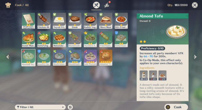 Almond Tofu is basically a food item that is rated 2-stars for its rarity. Getting that item is quite simple.