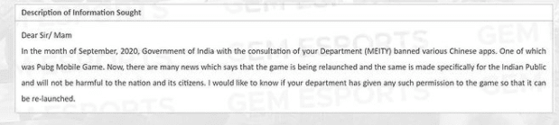 Gem Esports published a post on their social media handle which shed a light on the current state of PUBG Mobile India. As per the post, The Central Public Information Officer(CPOI) has responded to the query filed through a RTI (Right To Information) regarding the return of PUBG Mobile India.