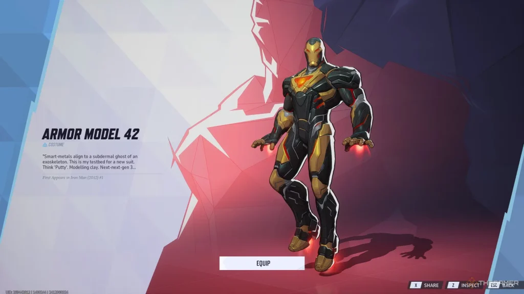 The Iron Man Armor Model 42 skin adds variety to character customization. It gives players a chance to use a design based on Iron Man’s popular comic appearance.