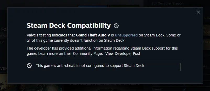 After the BattleEye anti-cheat update, GTA 5 became unsupported on Steam Deck devices which fueled outrage among fans.
