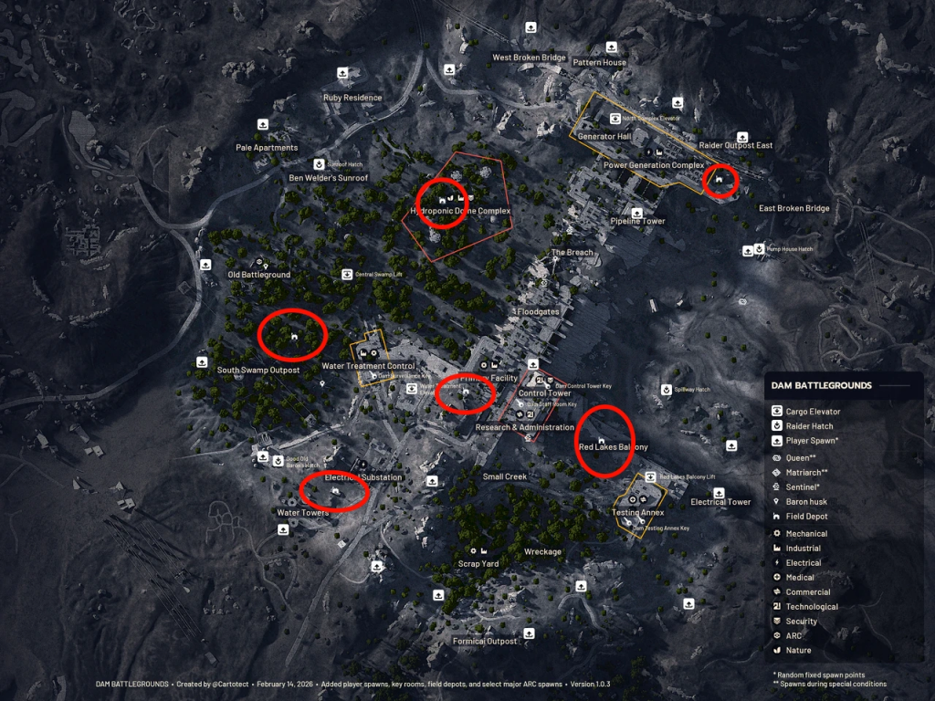 We’ve marked the locations of all the Arc Raiders Field Depot locations in the image below.