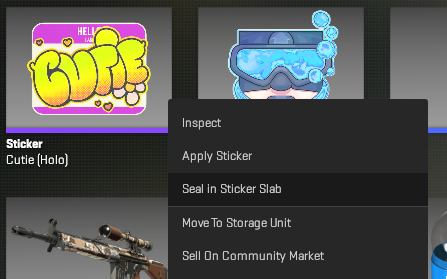 Now all you need to do is find a sticker that you want to embed into the slab, click on it, and select ‘Seal in Sticker Slab’.
