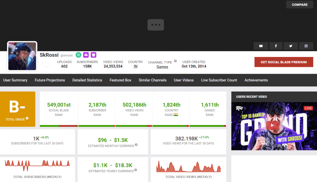 According to Social Blade, his YouTube channel boasts a substantial income, ranging between $1.1K (₹91,482) and $18.3K (₹15,21,941) annually.