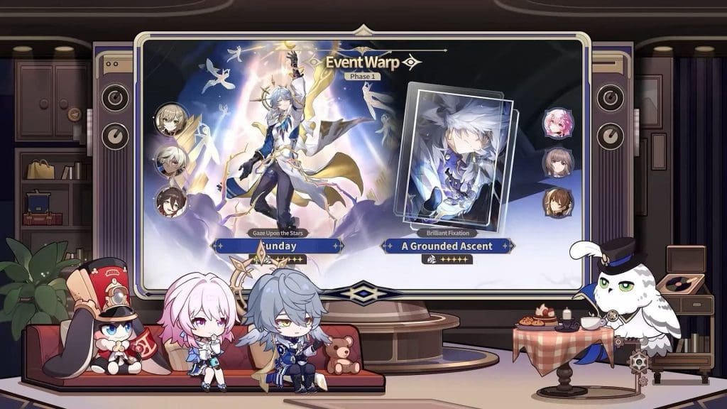 Launching alongside the update, the first phase introduces the Sunday banner, featuring the new 5-star character, Sunday, an Imaginary-type Harmony Path Trailblazer. This banner also brings back the Lightning-based Erudition Path hero, Jing Yuan, and includes the following 4-star characters: