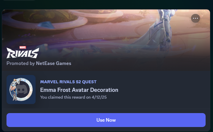 Now all that’s left for you to do is launch Marvel Rivals and play the game for fifteen minutes to complete the Discord Quest and get your exclusive Emma Frost avatar decoration.