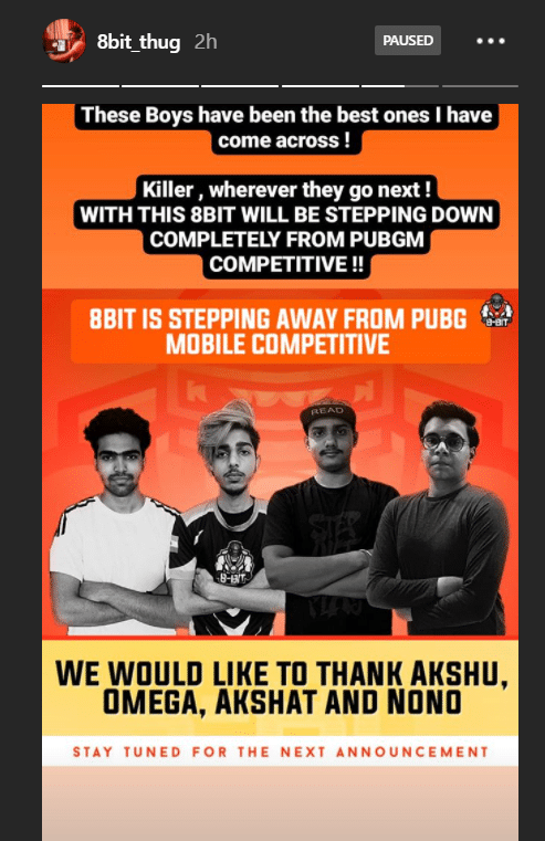 8Bit is stepping away from the competitive PUBG Mobile after a long run since the start of PUBGM esports in the country. The announcement was made by the team owner and co-founder of the organisation, 8bit_thug. 8bit is one of the oldest PUBG Mobile organizations in India and this revelation comes as a shocker for its fans.