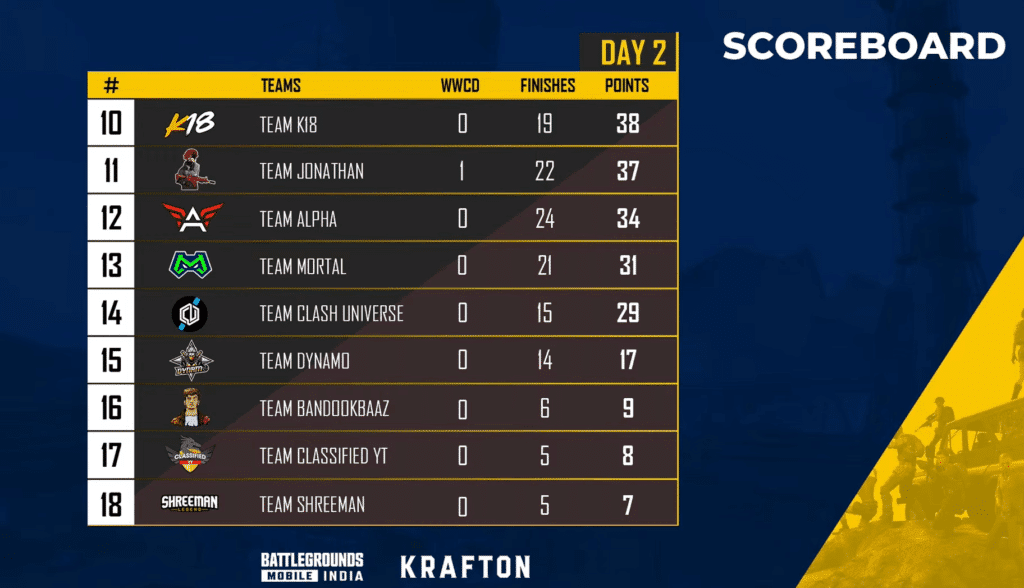 The BGMI Launch Party had a classic schedule of three matches per day and Team Snax won more than half of the scheduled maps. This led them to have a massive lead that no other team could chase as the rest started fighting for the second position.