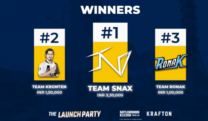 Team IND, participating in this tournament as Team Snax, has emerged victorious in the first-ever Battlegrounds Mobile India tournament called Launch Party. This tournament featured some of the best players and content creators in India and Team IND crushed them all to claim the lion’s share of the ₹6,00,000 prize pool.