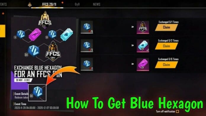 Blue Hexagon is the latest Free Fire event in which, a blue token is needed to redeem the rewards. A total of six weapon vouchers, four diamond voucher and one permanent FFCS pin can be earned via this event.