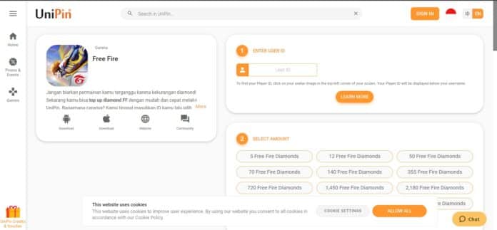 1. Click Here to visit UniPin and enter your Free Fire ID.