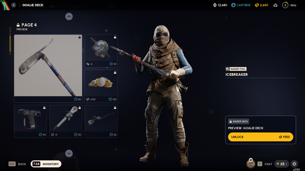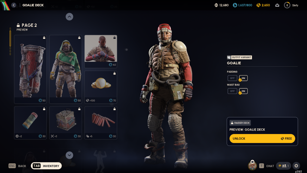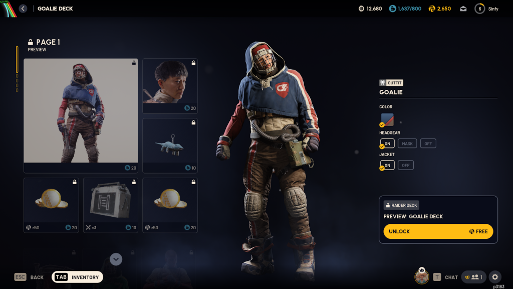 Much like the previous Raider Deck, each reward available in the Goalie Deck can be unlocked for free using Creds, a currency that can be obtained by simply playing Arc Raiders and completing daily quests.