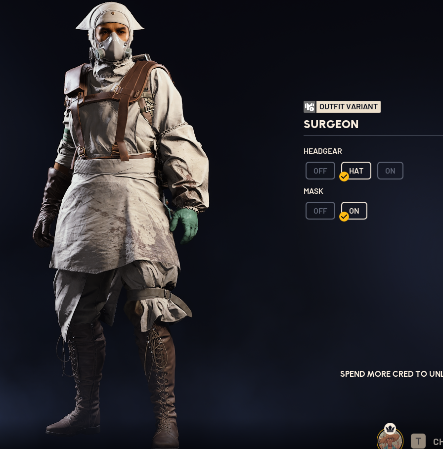 - Outfit Variant: Surgeon (Headgear and Mask)