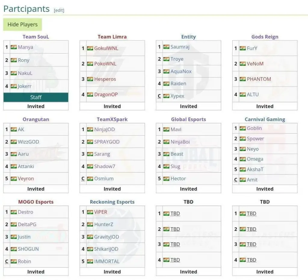 For a brief window, Liquipedia unveiled the names of 10 out of the 20 invited teams for the tournament. This leak included not just the team names but also the players slated to compete under each banner, effectively disclosing the new BGMI roster changes ahead of any official announcements.