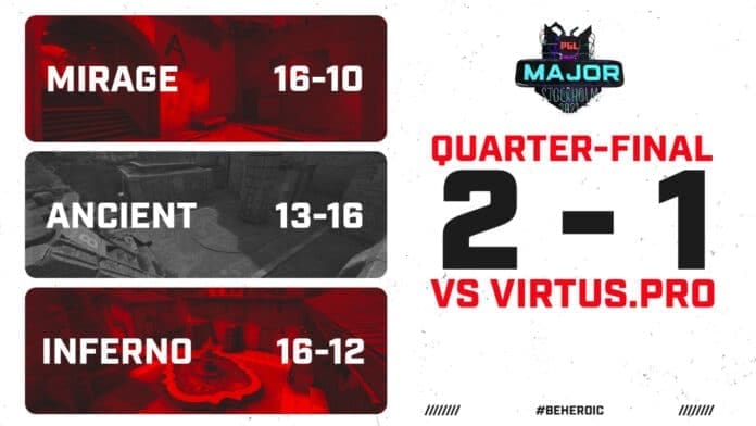 Heroic will take over the main stage on Saturday in the Semi-final of the PGL Stockholm Major as they beat Virtus.pro in a best of three Quarter-Final.