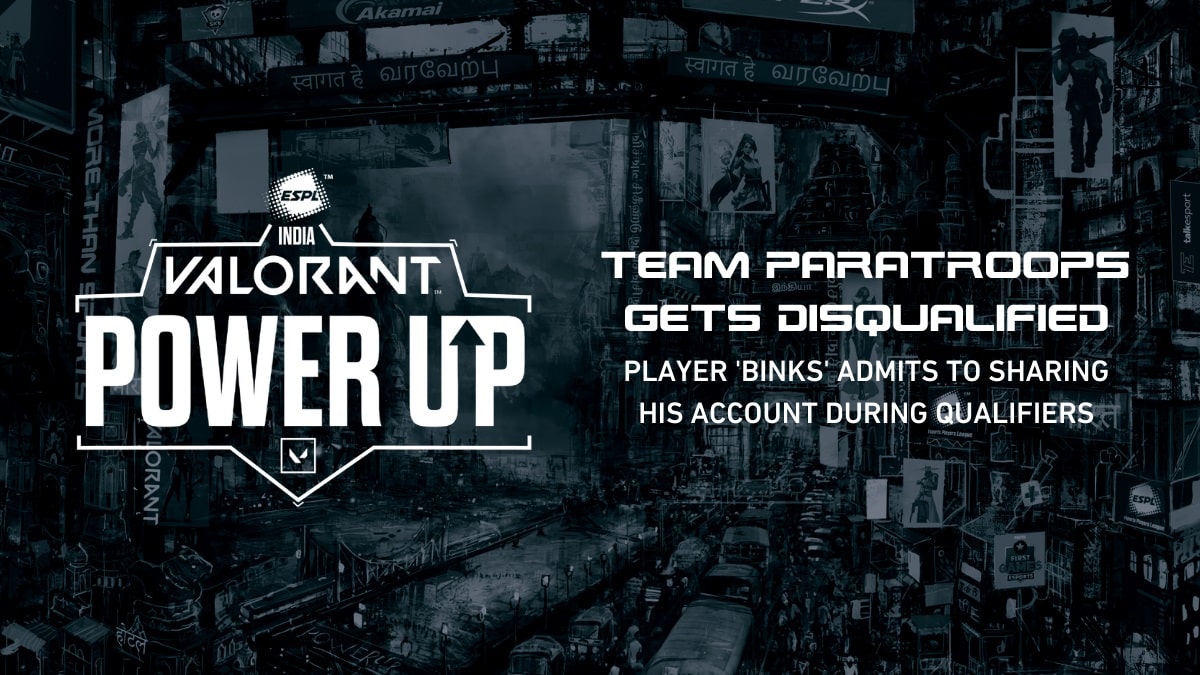 Esports Players’ League (ESPL) have decided to issue a six month ban to Paratroops and Mithul ‘Binks69’ Nayak after the latter confessed to having shared his account during the ESPL Valorant PowerUp India Qualifiers to have someone else impersonate him and compete on his behalf.