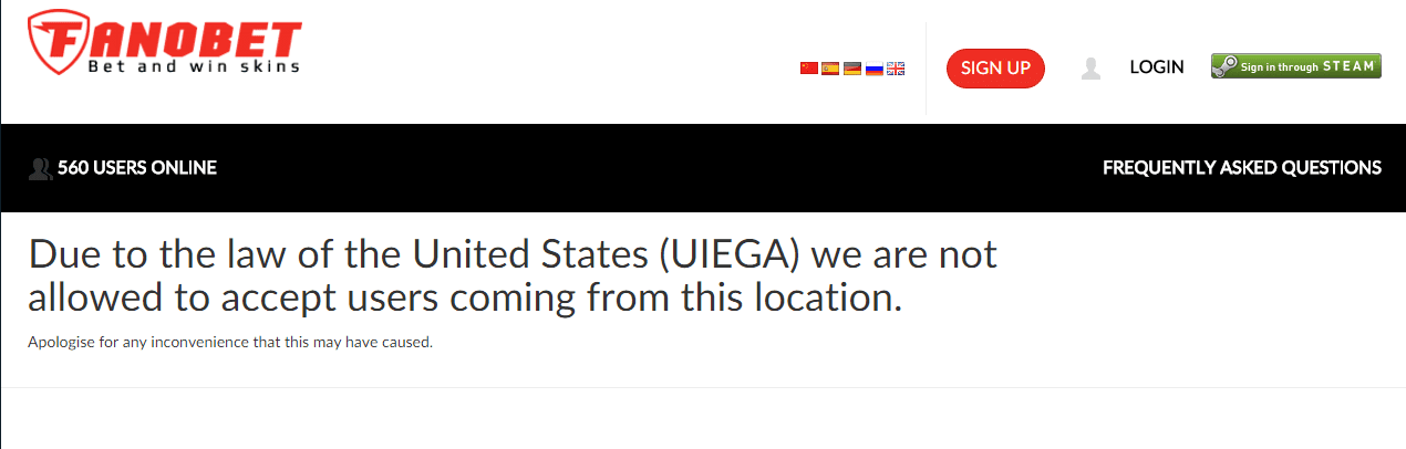 The mega esports betting website which goes by the name Fanobet banned in the US under UIGEA code of conduct under the LAW acts of the US which prohibits illegal betting.