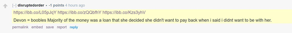 After these, Devon started to claim that these photos are fake, but, on July 11, a new Reddit post called “The Truth about Boobles Top Donator” appeared. This post leads to a giant series of screenshots that are telling a short story about B00ble’s and her top donator’s arduous relationship.
