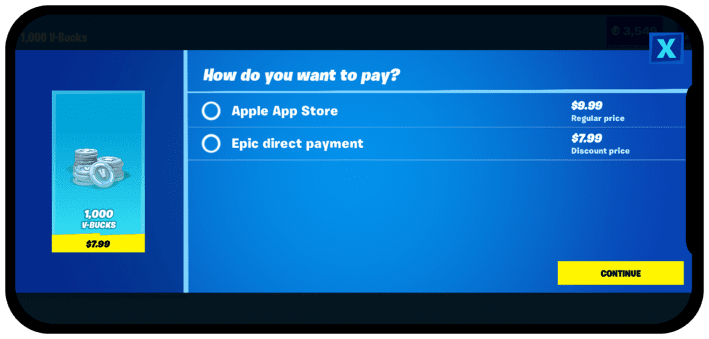According to the new implementations, players can choose from two options for any in-app purchases. If a player has to purchase 1000 V-bucks, usually they have to pay $9.99 through the normal system but with the new system, the players can opt to pay a discounted price of $7.99 through Epic direct payment.