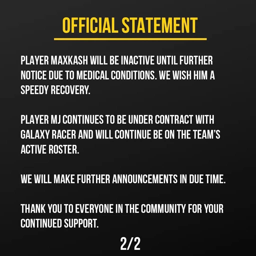 According to a report by AFKGaming, Galaxy Racers initially suspended a member of their coaching staff for certain undisclosed allegations but did not take a legal route due to lack in substantial evidence. They also issued formal warnings to resolve this matter.