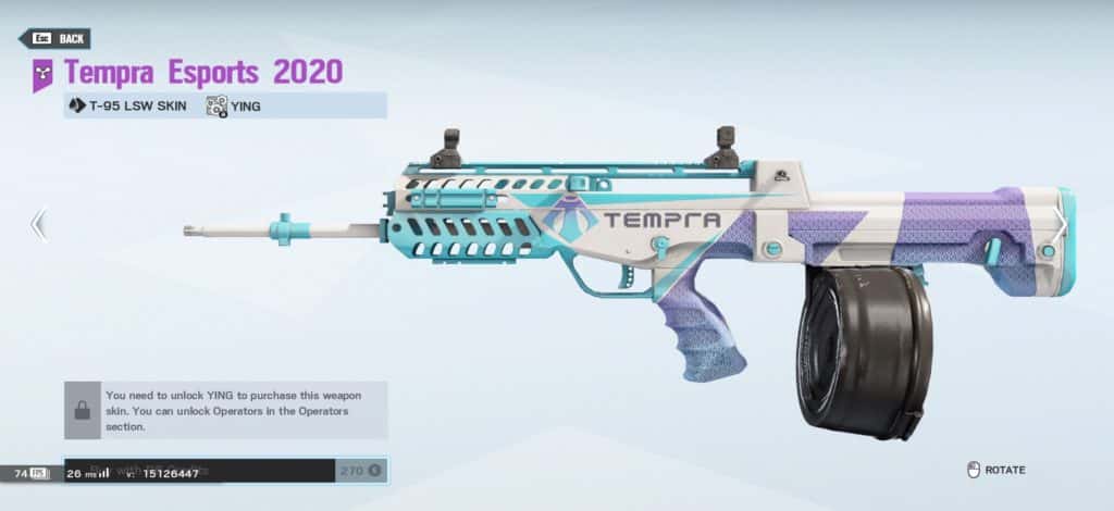 The series of skins are from the second tier of the program, which means that teams from the second tier if R6 esports get unique skin and a charm each.