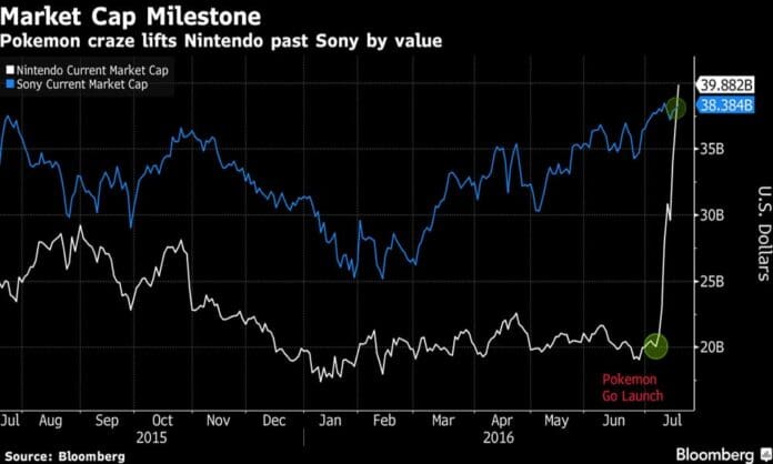 Nintendo market cap has now doubled since the release of Pokemon Go.