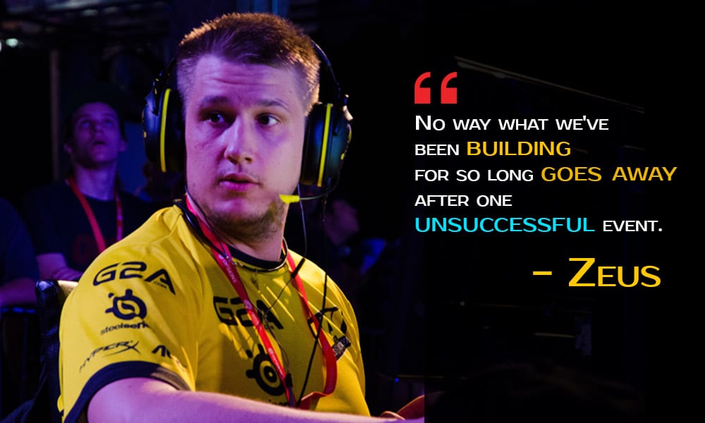 Zeus self-motivated himself, his team and the fans of their strength and making it pretty sure that they will not be rushing out to change rosters and blaming an individual for the loss. He instead, went ahead and prioritize the relations build among the players while cruising through and yet again making it to the legends of ESL One Cologne 2016.