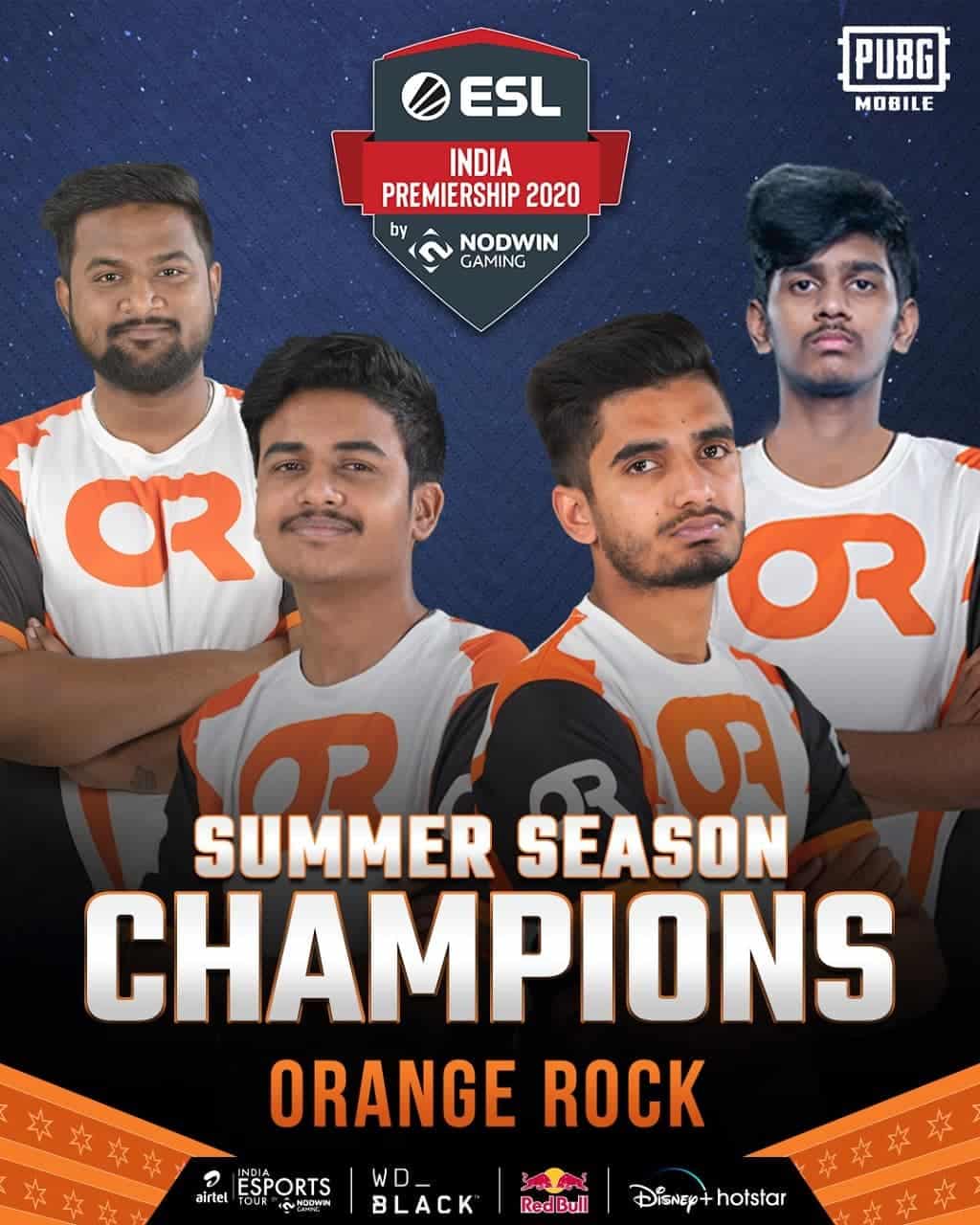 Orange Rock wins the ESL India Premiership Summer Season PUBG Mobile Grand Finals. Orange Rock grabbed the first ever ESL India PUBG Mobile Major title win and a grand prize of ₹6,00,000. Fnatic and Orange Rock had a cut-throat competition on the final day and Orange Rock won the Grand Finals with mere 6 points lead.