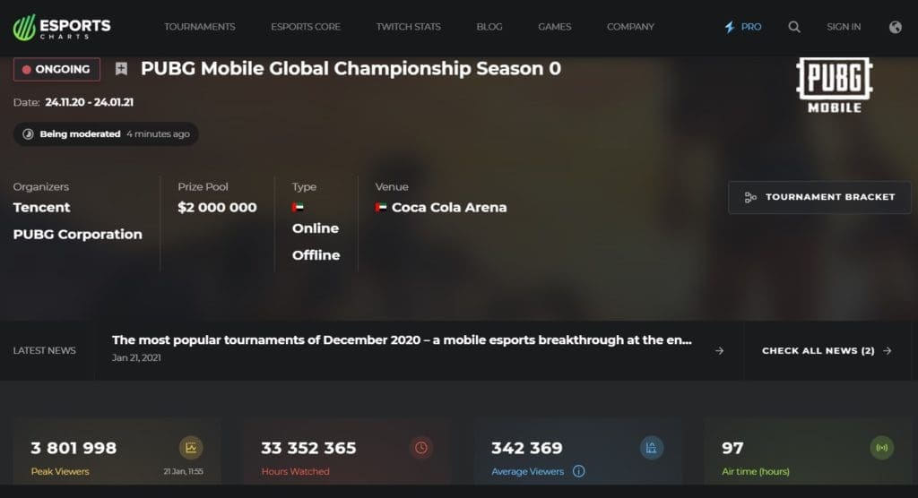 According to Esports Charts, the peak viewership for the first match of PMGC Season 0 Finals was 3,801,998. This is the highest watching ever for any PUBG Mobile Esports event till date and is almost doubled the value of previous landmark. PUBG Mobile was expected to make a big impact with this tournament but the scale is much larger than expected.