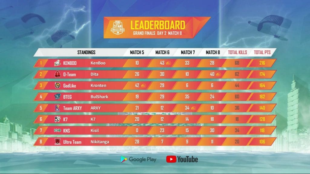 Since Team KENBOO clinched the top spot, they will be getting a major part of the $250,000 which were up for grabs. Over the course of 2 days, 8 matches were played in total where the winning team managed to put 216 points on the scoreboard with an impressive 68 kill count. Not far behind was D-team which collaborated with content creator Dita, putting up a score of 174 with 62 kills in their pocket. Third rank was secured by Team Godlike which played alongside popular Indian streamer, Kronten as they managed to get a total of 44 kills and 164 points to edge out team Bullshark by a difference of merely 2 points.