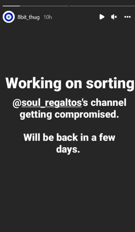 8Bit Thug, the co-owner of S8UL and founder of 8Bit Creatives, addressed this issue on his Instagram and said that they are working to bring his channel back and it may take few days to get it restored. A snippet of his post is attached below: