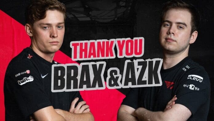 T1 on Twitter have announced the departure of Braxton “brax” Pierce and Keven “AZK” Larivière from their Valorant division.