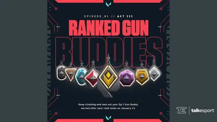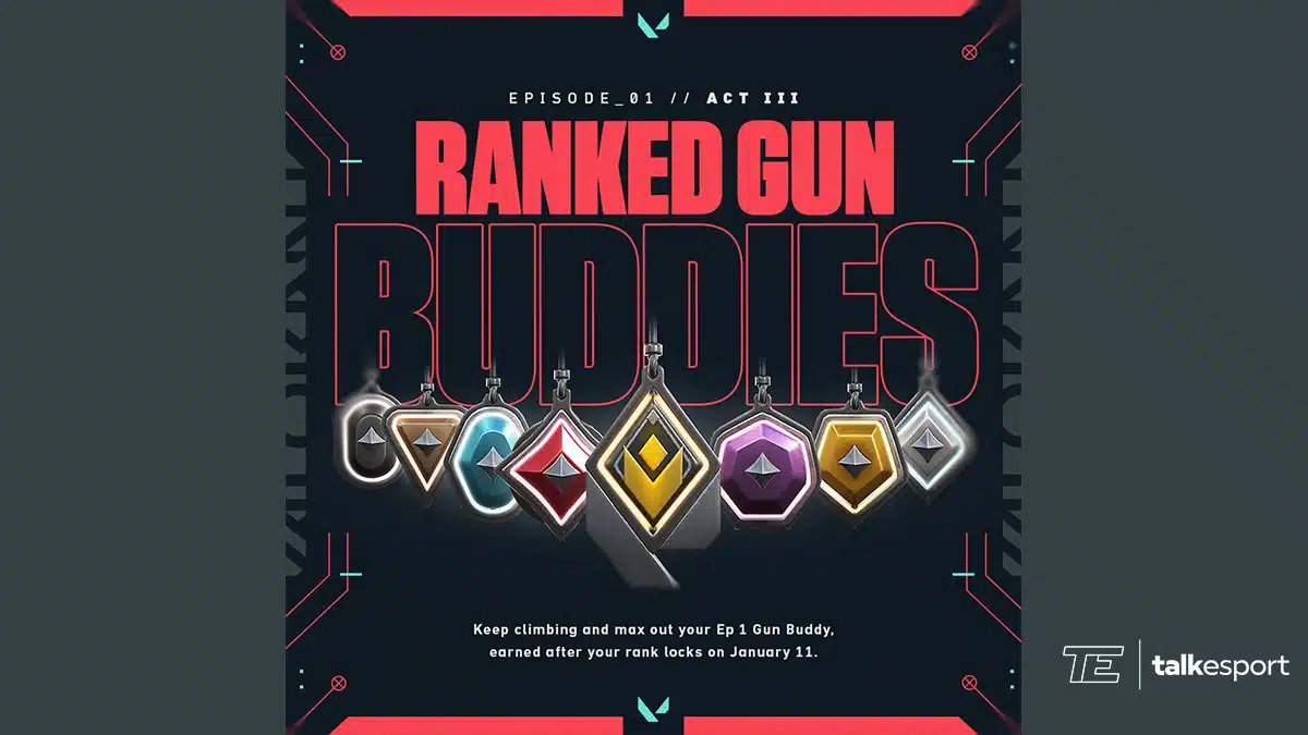 Riot Games have announced the upcoming rank-based gun buddies that players will receive in Episode 2 depending on which part of the competitive spectrum they stand at the conclusion of Episode 1.