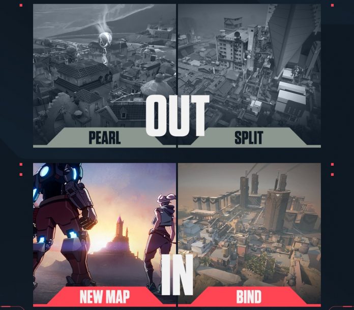 The void left by Pearl and Split in the competitive map pool will be replaced by Bind and an entirely new map. Bind was removed from the competitive pool alongside Abyss in the Valorant patch 10.04.