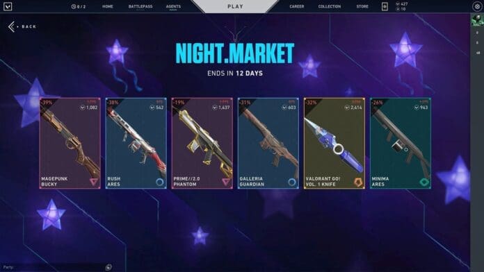 The Night Market features a set of six randomized weapon skins for the players to choose from, and each weapon skin is discounted up to a whopping 50%.