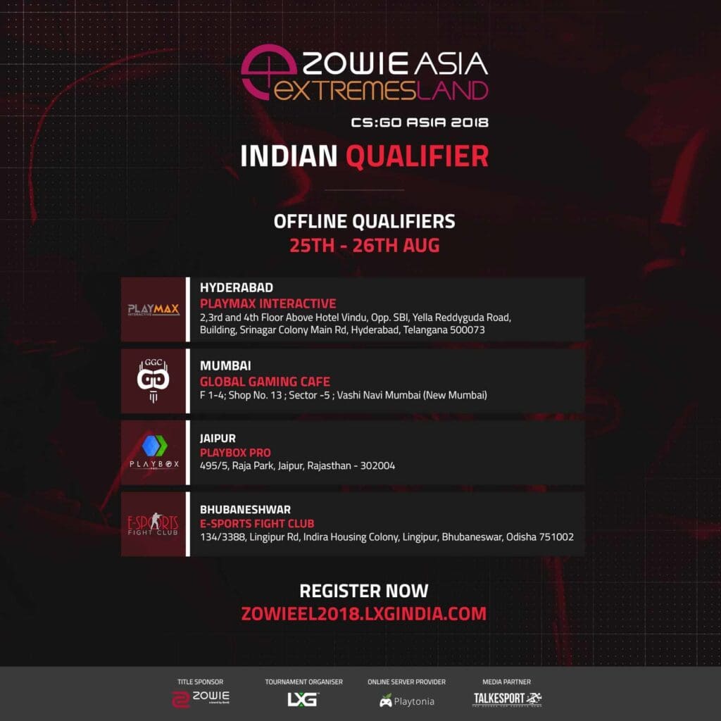 Offline Qualifiers is possibly the last ladder to climb all the way to represent India in Shanghai. Necessarily, ZOWIE has revealed the dates, venues, format and registration process for the ZOWIE eXTREMESLAND 2018 – Offline Qualifiers (India). ZOWIE eXTREMESLAND is hosting four qualifiers in Mumbai, Bengaluru, Jaipur and Bhubaneswar simultaneously on August 25th & 26th.