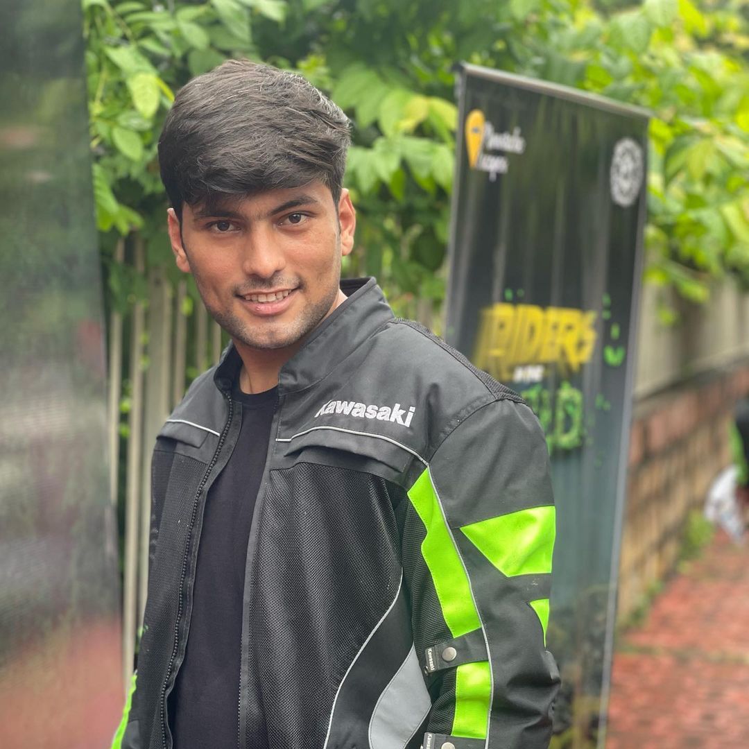 In his recent Instagram Stories, he is wearing a Kawasaki Jacket while riding on the Madhya Pradesh bike tour.